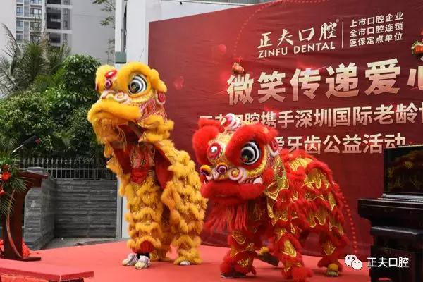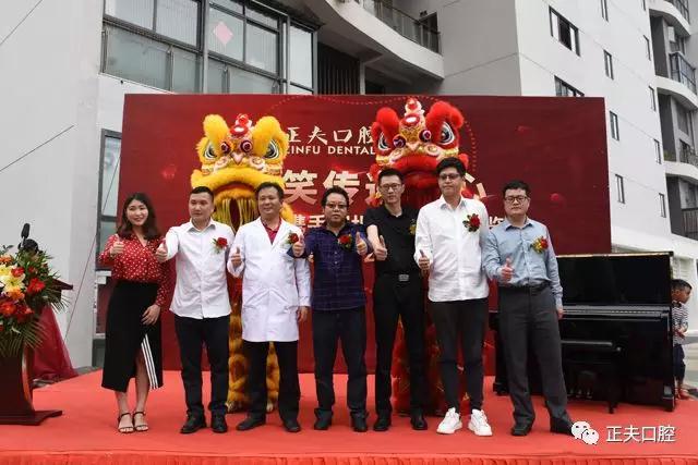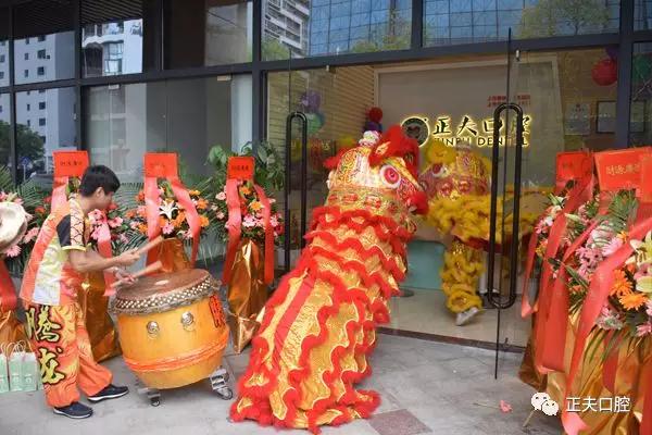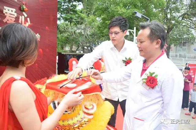 (正夫口腔副总陈子成与蛇口雅园店主任李秀高医师为舞狮点睛)