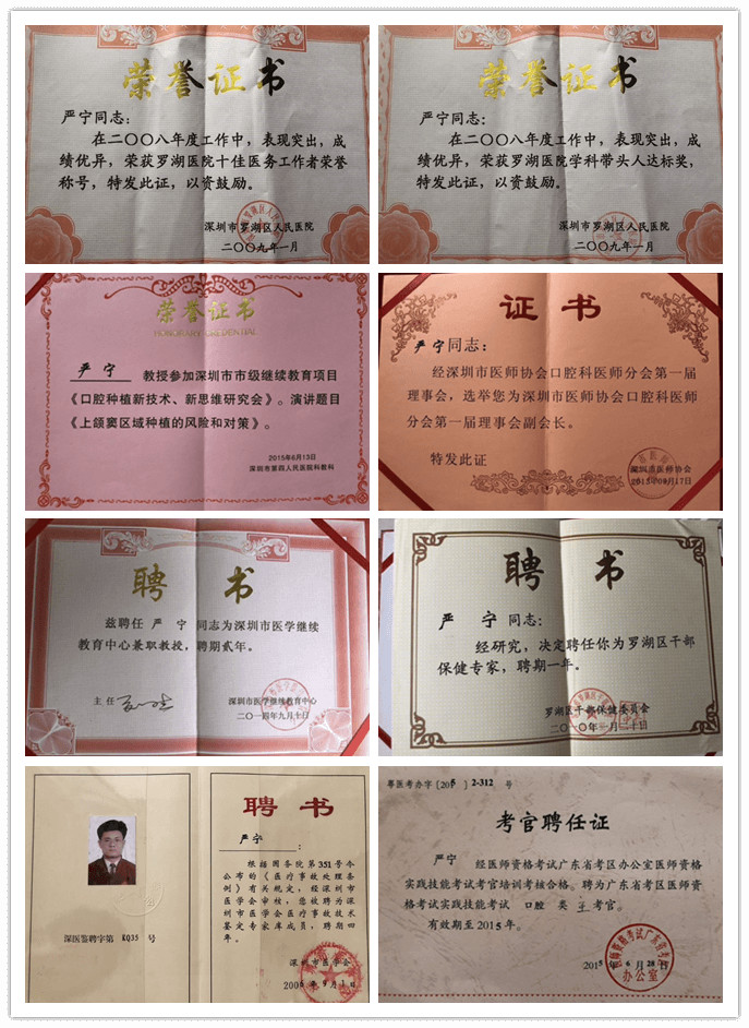 在科研方面,严宁院长更是走在前面。在担任罗湖区人民医院口腔科主任期间,曾负责组建及规范该院的口腔科学科建设,负责培养科室的口腔专业团队。早在2005年,很多人都还不知道种植是什么东西的时候就出版了《口腔种植学临床操作》,将自己的学习、研究成果推广开来,培养更多的口腔种植医师,为更多缺牙的患者带来福音。2013年,编著了《口腔颌面外科》一书,在现代医学日新月异的环境里,紧跟时代发展的步伐,增值自己,也造福他人。他还多次赴国外学习,与国外著名的专家学习交流,期待掌握到更多种植知识。