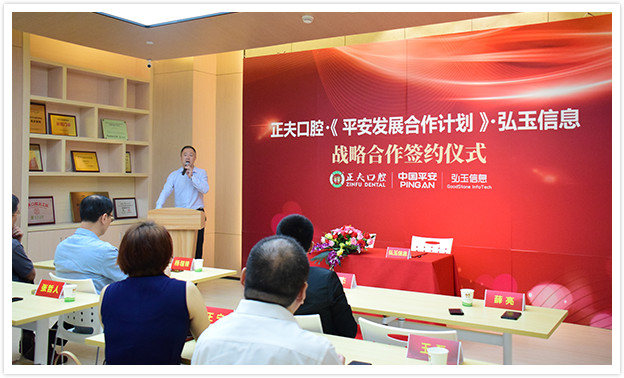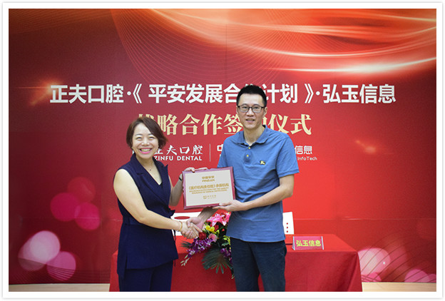 弘玉信息执行总裁王杰先生与正夫口腔董事长杨瑞锋先生就战略合作签约,标志着正夫口腔·《平安发展合作计划》·弘玉信息的战略合作关系正式确立。相信在未来的日子里,大家将同心协力,共同营造一个和谐、安全、专业的口腔医疗环境。