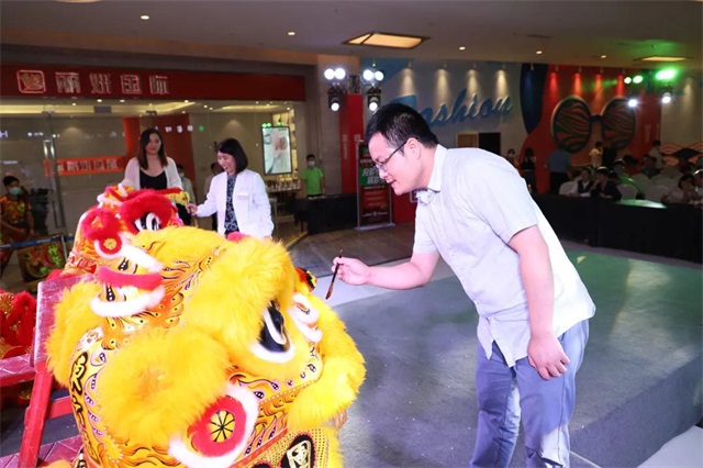 狮子点睛繁华富贵,簪花挂红生意兴隆,金狮开光威武赫赫,祥狮献瑞瑞气临门。企鹅医生·正夫口腔董事长助理汪礼长先生、企鹅医生·正夫口腔西丽宝能城店门诊总监王玲女士为舞狮画上点睛之笔后,精彩绝伦的醒狮表演正式开始,并由企鹅医生·正夫口腔拓展副总杨春盛先生、企鹅医生·正夫口腔西丽宝能城店门诊总监王玲女士进行采青仪式,吸引了众多客户及路人观赏,现场十分热闹。