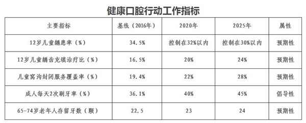 《健康口腔行动方案(2019-2025年)》工作指标统计图