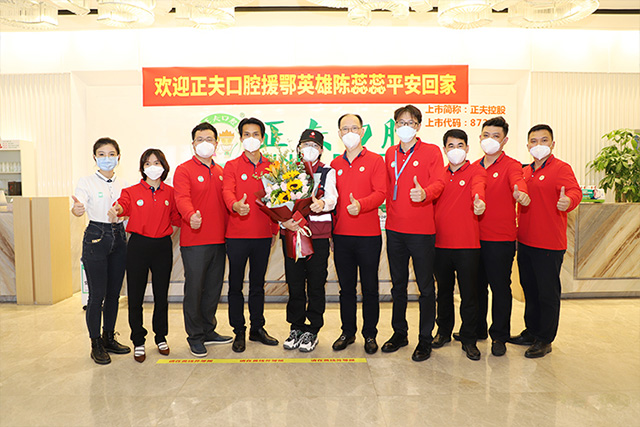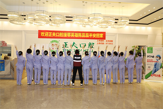 “为什么这么说?这次疫情让我学会了珍惜。在一个团队,最重要的是要学会团结,正夫给予了我很多正能量。也给予我懂得什么叫团结,让我走出门外不给正夫丢脸。领导对我的关心也特别多,去到武汉也收到很多的关心问候短信,让我很感动,给我心里很大的鼓励。我的鼓励不仅来自与家人、朋友,我觉得更多的来自于我的单位--正夫口腔的家人们,不仅为中国而骄傲,还为正夫而骄傲。“ 陈蕊蕊激动的说。