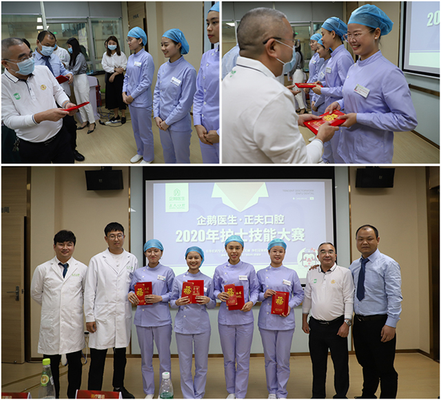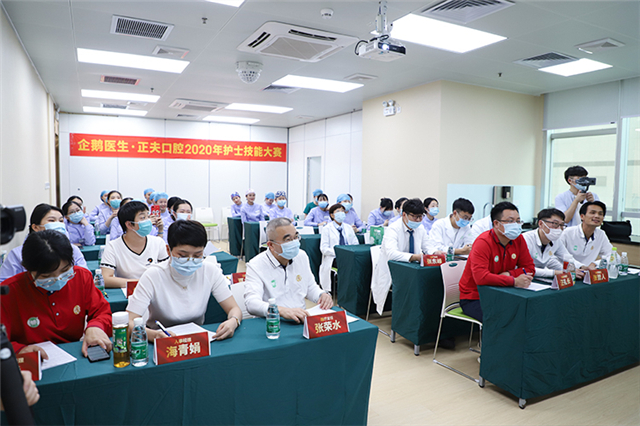 企鹅医生·正夫口腔运营副总张哲人、医疗副总张运发、董事长助理汪礼长、门诊主任、总护士长、门诊护士长等高层领导出席观摩了本次比赛。
