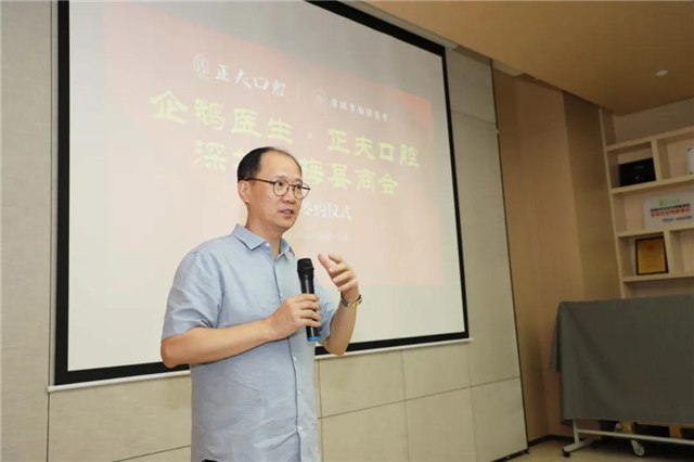 正夫口腔董事长杨瑞锋先生在致辞中说道,“此次是两个平台的强势联盟合作,企鹅医生·正夫口腔希望能与深圳市梅县商会深度融合,给更多受众服务,相互赋能壮大,将正夫口腔的势能潜力激发。”