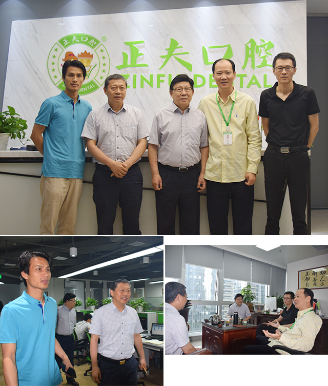 2017年5月23日,武汉大学口腔医院名誉院长樊明文、江汉大学口腔医院董事长李宗族一行莅临正夫口腔,在正夫口腔集团董事长杨瑞锋及公司高层领导热情的接待下,参观了正夫口腔总部和明星旗舰店,并就三方战略合作展开深入的交流。