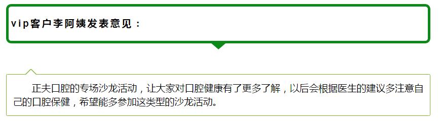 正夫口腔的专场沙龙活动,让大家对口腔健康有了更多了解,以后会根据医生的建议多注意自己的口腔保健,希望能多参加这类型的沙龙活动。正夫口腔一直积极参与社会公益活动,定期举办各种口腔专业知识讲座。正夫口腔需要表达的不仅是一个品牌,更是一种责任。添置先进的医疗设备和材料都是希望能让深圳市民享受到舒适化、数字化、专业化的齿科服务。正夫口腔,为您的口腔健康保驾护航,争取提供更优质的口腔服务!