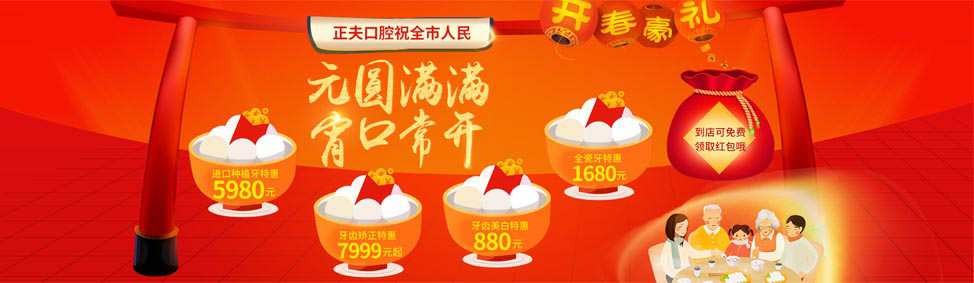 闹元宵,吃汤圆,阖家欢度元宵节。正夫口腔祝大家圆圆满满,笑口常开。为庆祝元宵,正夫口腔特推出了如下超值看牙优惠: