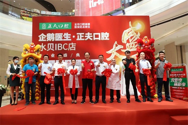 金剪一裁财路开,不尽财源滚滚来!由企鹅医生•正夫口腔董事长杨瑞锋先生、企鹅医生•正夫口腔董事长助理汪礼长先生、企鹅医生•正夫口腔医疗副总张运发先生、企鹅医生•正夫口腔运营副总张哲人先生、企鹅医生•正夫口腔拓展副总杨春盛先生、企鹅医生•正夫口腔财务经理陈小良先生、企鹅医生•正夫口腔商学院总经理吴剑兴先生、水贝IBC MALL招商营运总监邹志伟先生、企鹅医生•正夫口腔水贝IBC店院长张荣水先生、企鹅医生•正夫口腔水贝IBC店主管李谆谆女士为开业庆典剪彩。