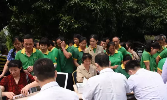 2016年5月1日早10点,活动现场已经人潮涌动。环卫工们都纷纷排着队等待着口腔检查。