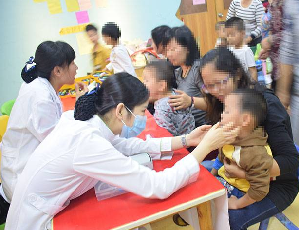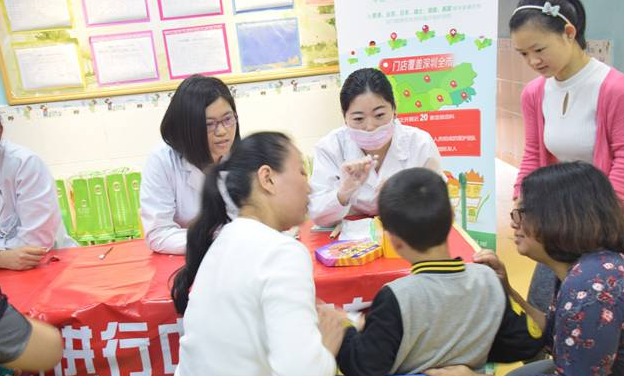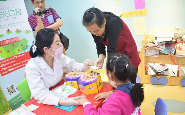 正夫医生们正在耐心地为孩子和家长们检查口腔,并根据每位孩子和家长的口腔问题提出合理的建议,教导孩子们应该如何刷牙,如何保持口腔卫生。